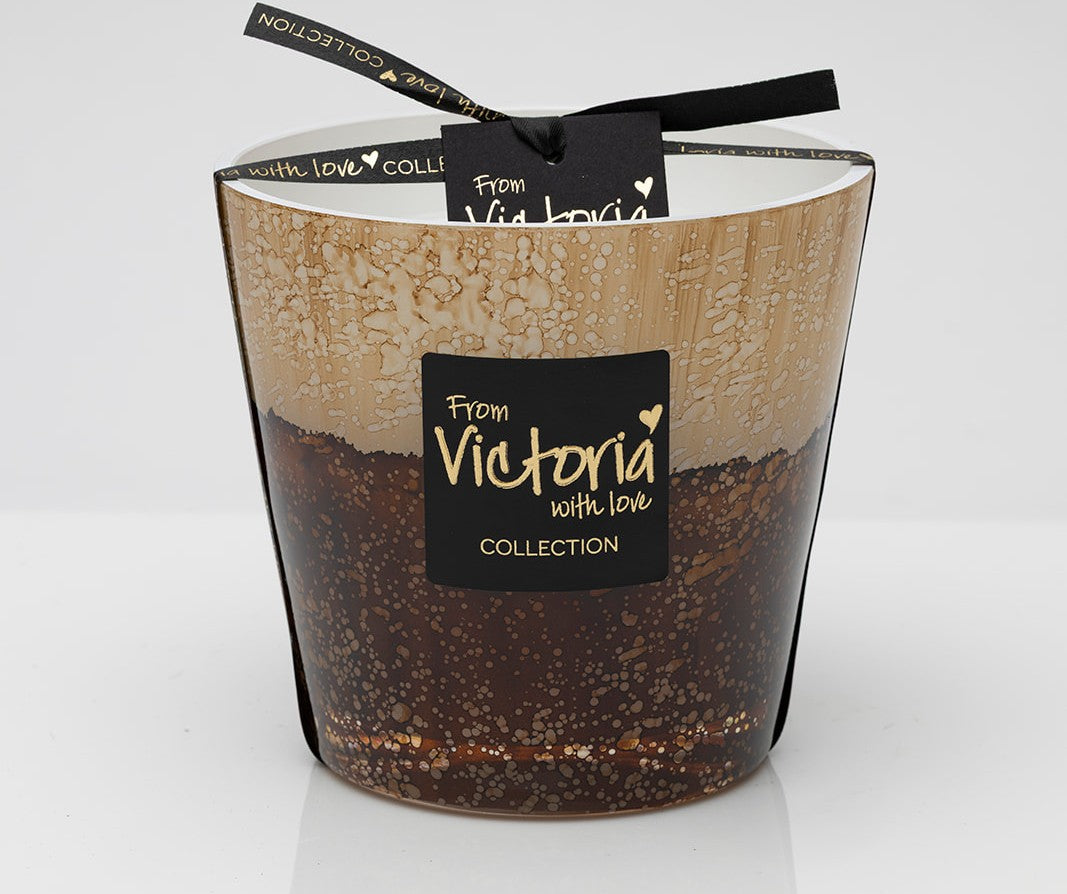 De "glazen " geurkaars van "Victoria with Love" geeft vele uren gezelligheid in huis. Niet enkel dankzij de mooie afwerking met echte koehuid, maar ook door de etherische geuren die uw kaars vrijgeeft tijdens het branden en het gezellige licht dat uw ruimte vult dankzij de meerdere wieken.